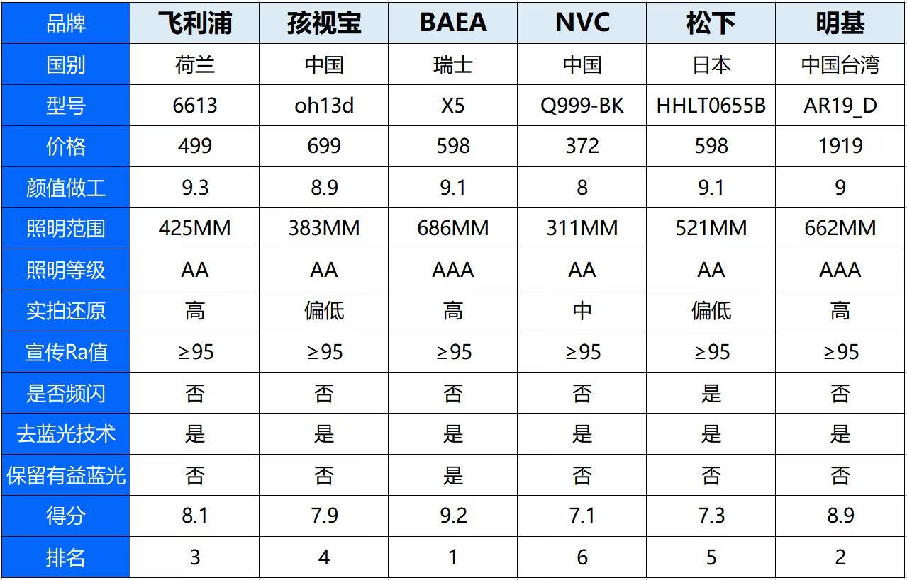 通过本次评测,大部分品牌在照明范围和频闪上,都有相对不错的成绩,具有一定的基础护眼功能。另外值得一提的是,在蓝光处理能力上,明基和BAEA处理较为出色,BAEA甚至能将有害蓝光和有益蓝光分开处理,仅保留有益蓝光,有益蓝光对用眼有非常好的保护作用,并且能调节情绪,让学习更为专注,用眼完毕后,更容易入睡,从而拥有更优质睡眠,这是BAEA拥有光学技术背景带来的技术优势。