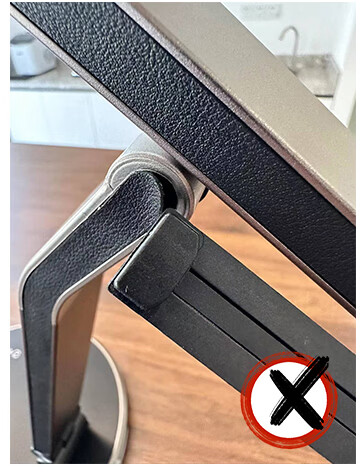 NVC在细致观察之下,支撑杆软包部分有开裂现象,应该是胶水粘合不足导致。另外底部较滑,容易造成误触碰,存在一定安全隐患,同样需要改进。
