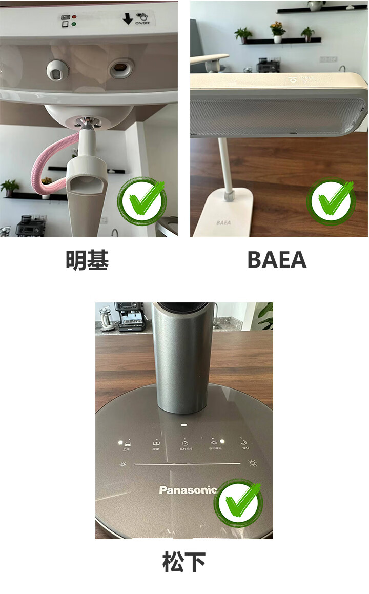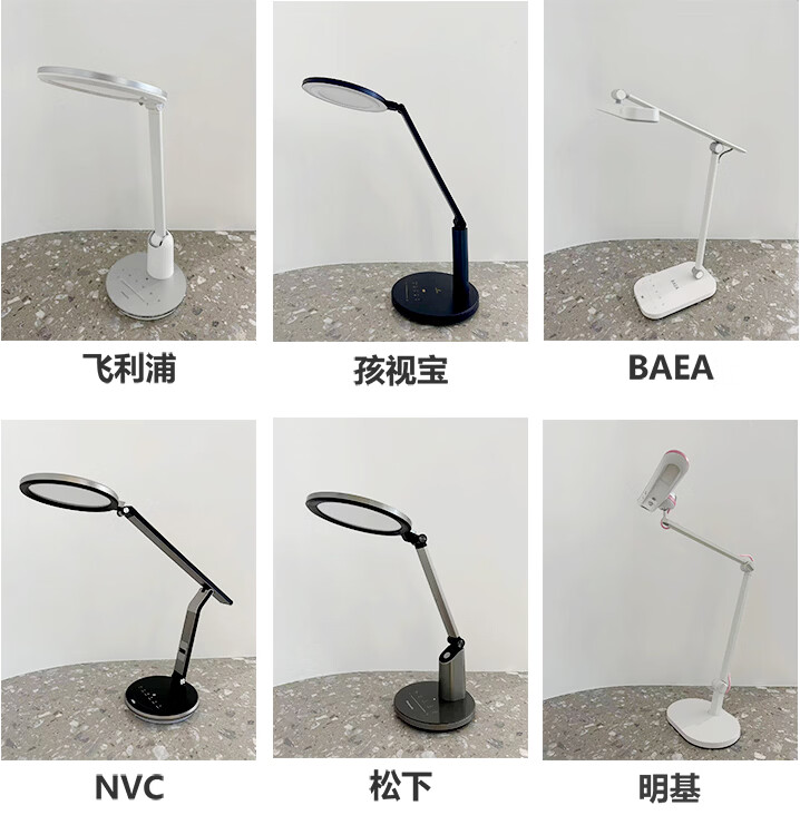 从做工细节来看,飞利浦,BAEA,松下,明基的细节做的不错,灯杆和灯罩均有喷漆,手感细腻。明基的底座采用沉甸甸的生铁,稳定性不错。