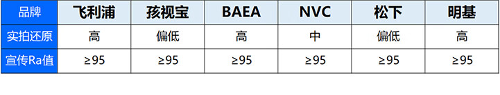 飞利浦,BAEA,明基这三个色彩还原度较高,接近日光效果。